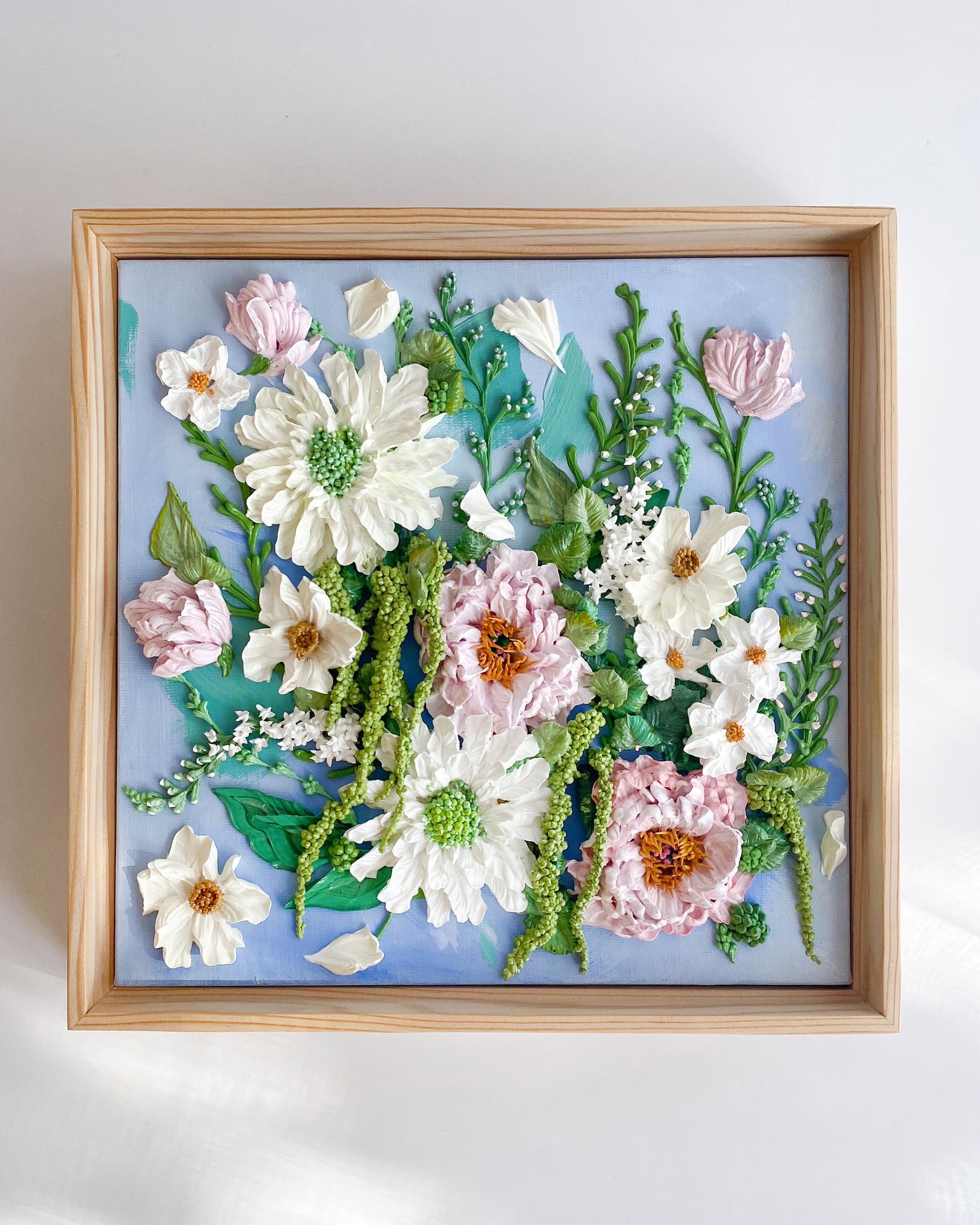 Each intentional layer carries the softness of a dream-state and the grounded hope of the life I’m building: a life filled with creativity, connection, and moments of real presence. The raised textures rise like possibilities, the colors shift like new beginnings, and the woven light represents the visions I hold for my future — the ones not yet realized, but already deeply felt.