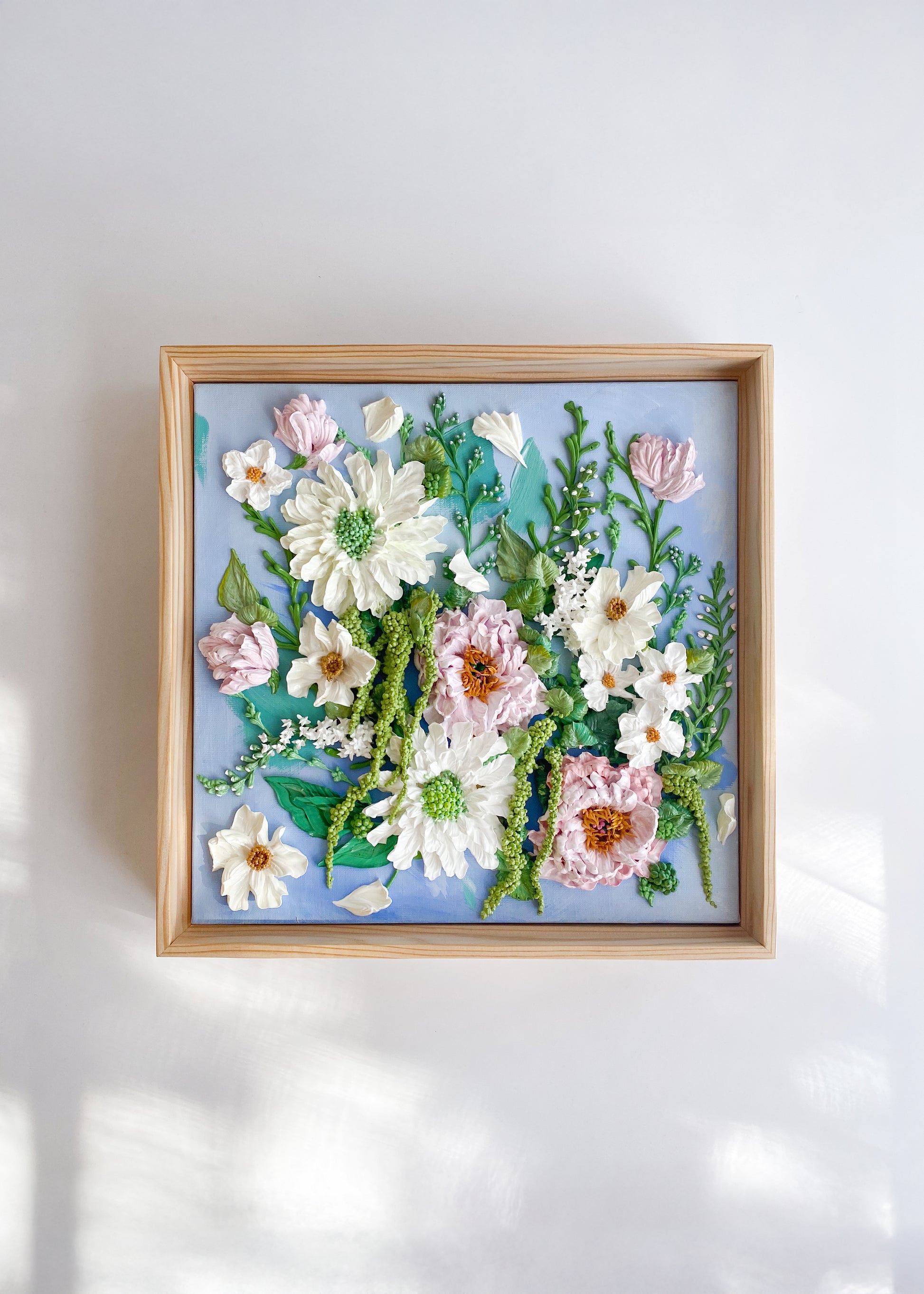 – 12x12 inches (artwork), 13x13 (with Frame), 2.5" depth from the wall